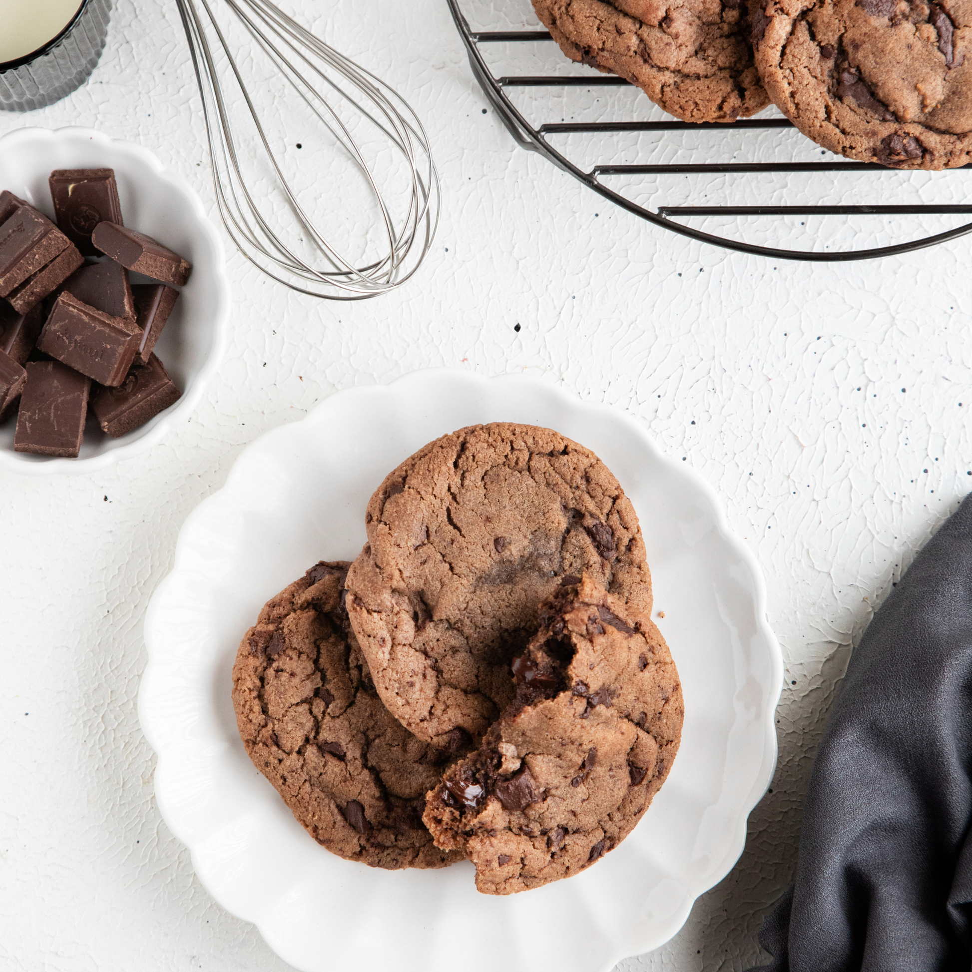 Enhanced with a finishing touch of sea salt, the Double Trouble cookies boast a rich chocolatey experience with a blend of decadent chocolate chunks and cocoa powder. These chunky delights promise a chewy texture, delivering a double dose of chocolate goodness in every bite.